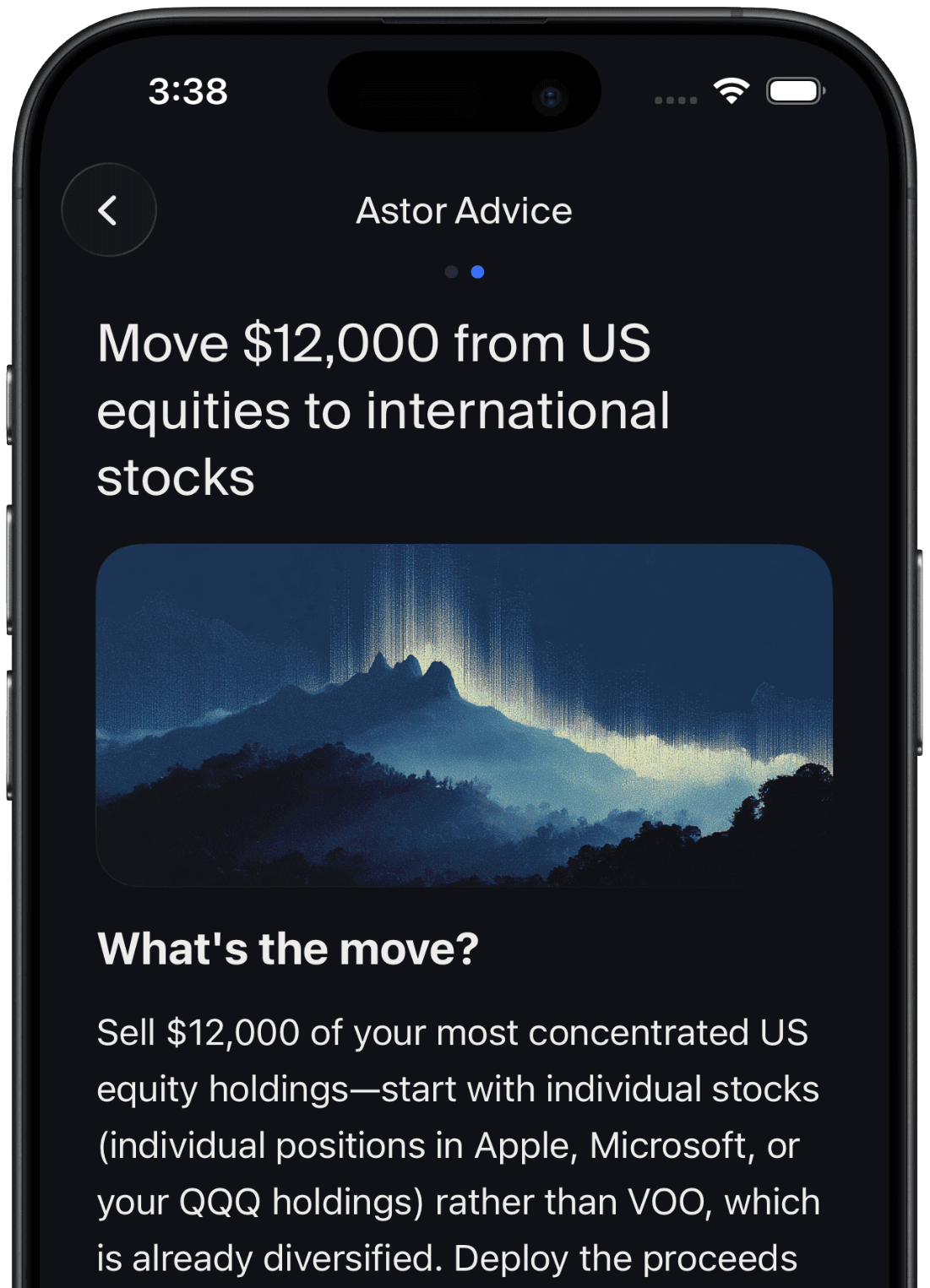 Astor connects to your brokerage accounts, analyzes your holdings, and gives AI-powered guidance tailored to your situation.